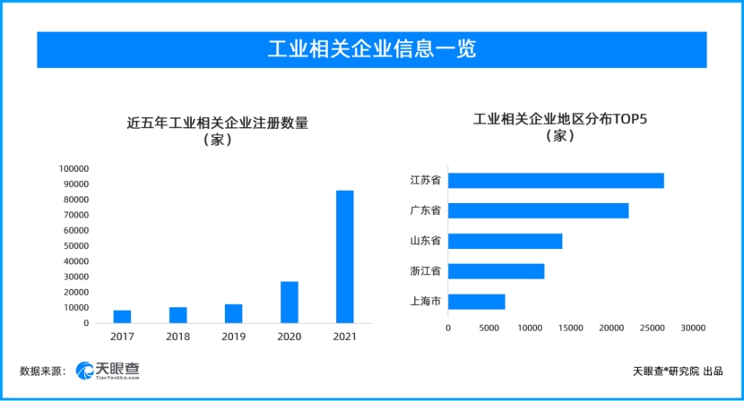 2021年新增注册工业相关企业数量为8.6万家,年度注册增速为98.5%。2022年以来已新增注册4.8万家,同比增长71%。