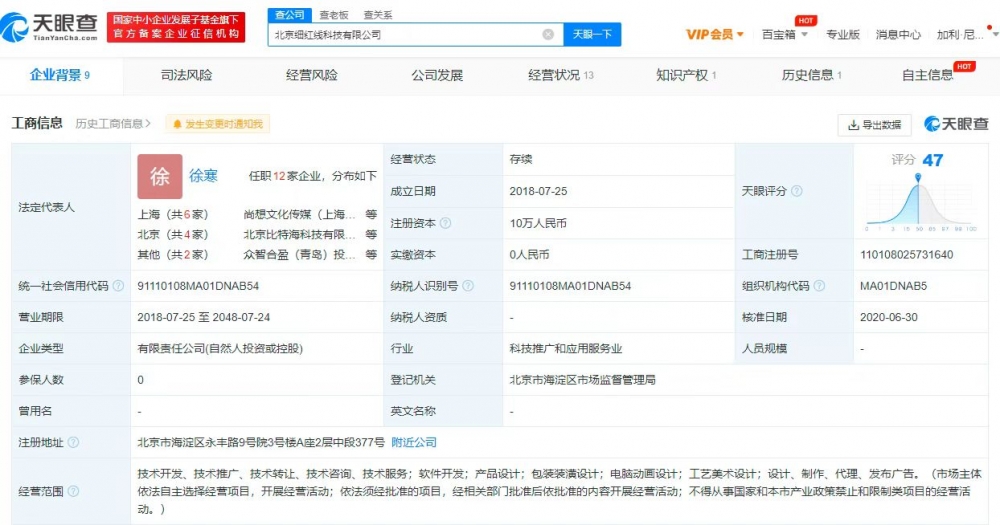 天眼查App显示,北京细红线科技有限公司成立于2018年7月,注册资本10万人民币,经营范围含软件开发;产品设计等,由徐寒、黄贺共同持股。公开信息显示,徐寒、黄贺都曾为锤子科技成员。